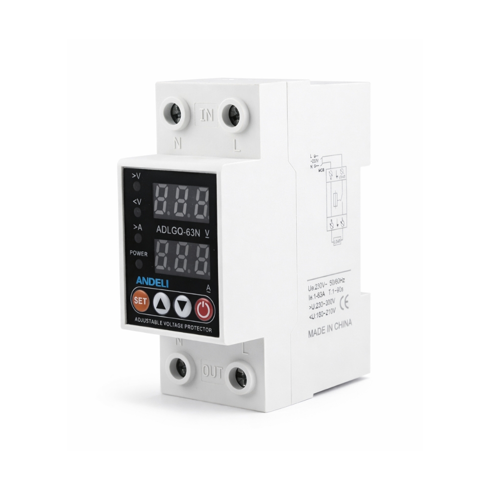 The ANDELI Adjustable Voltage Protector is a high-performance electrical protection device designed to safeguard electrical equipment from voltage fluctuations, overvoltage, and undervoltage conditions. With an effective voltage range of 80V–300V and a current capacity of up to 63A, this smart voltage protector ensures stable and reliable protection for sensitive electrical systems.